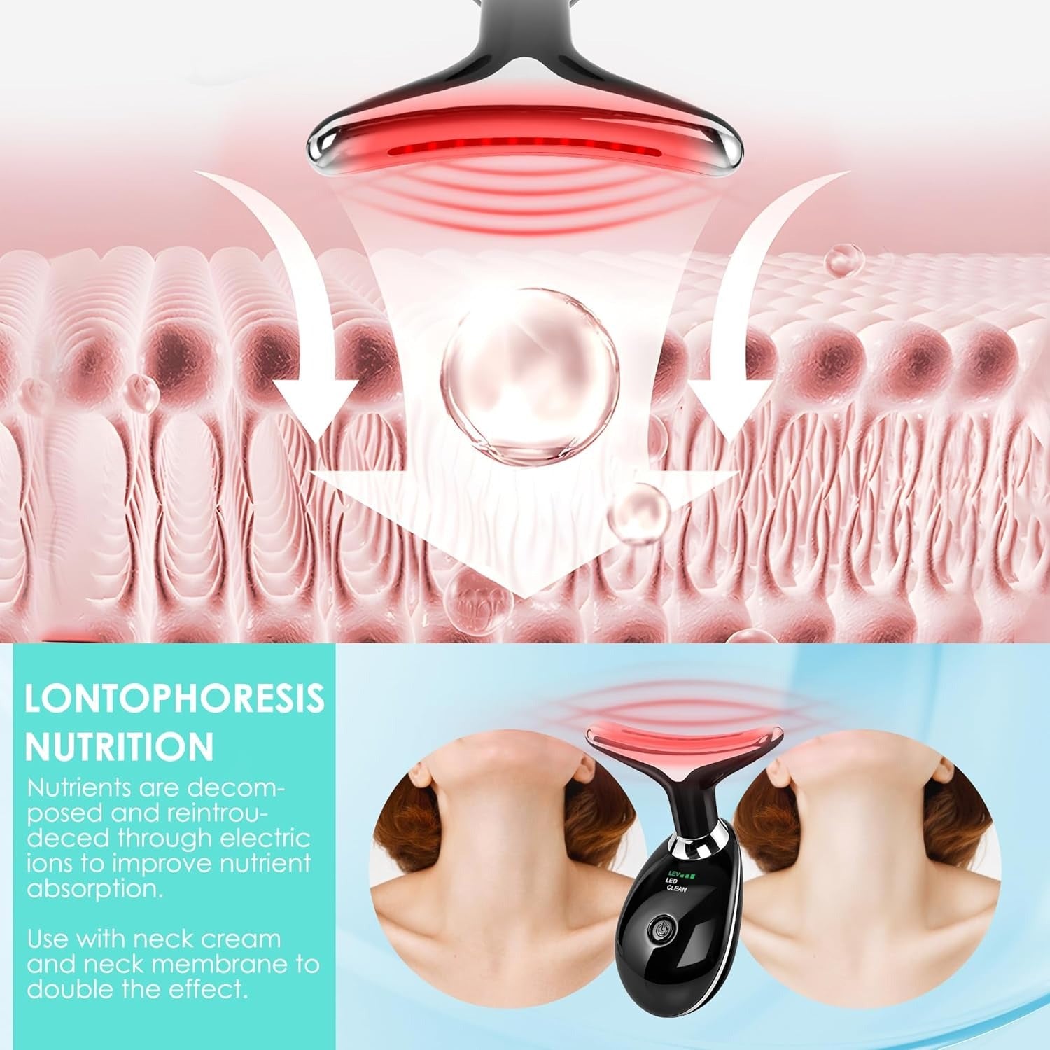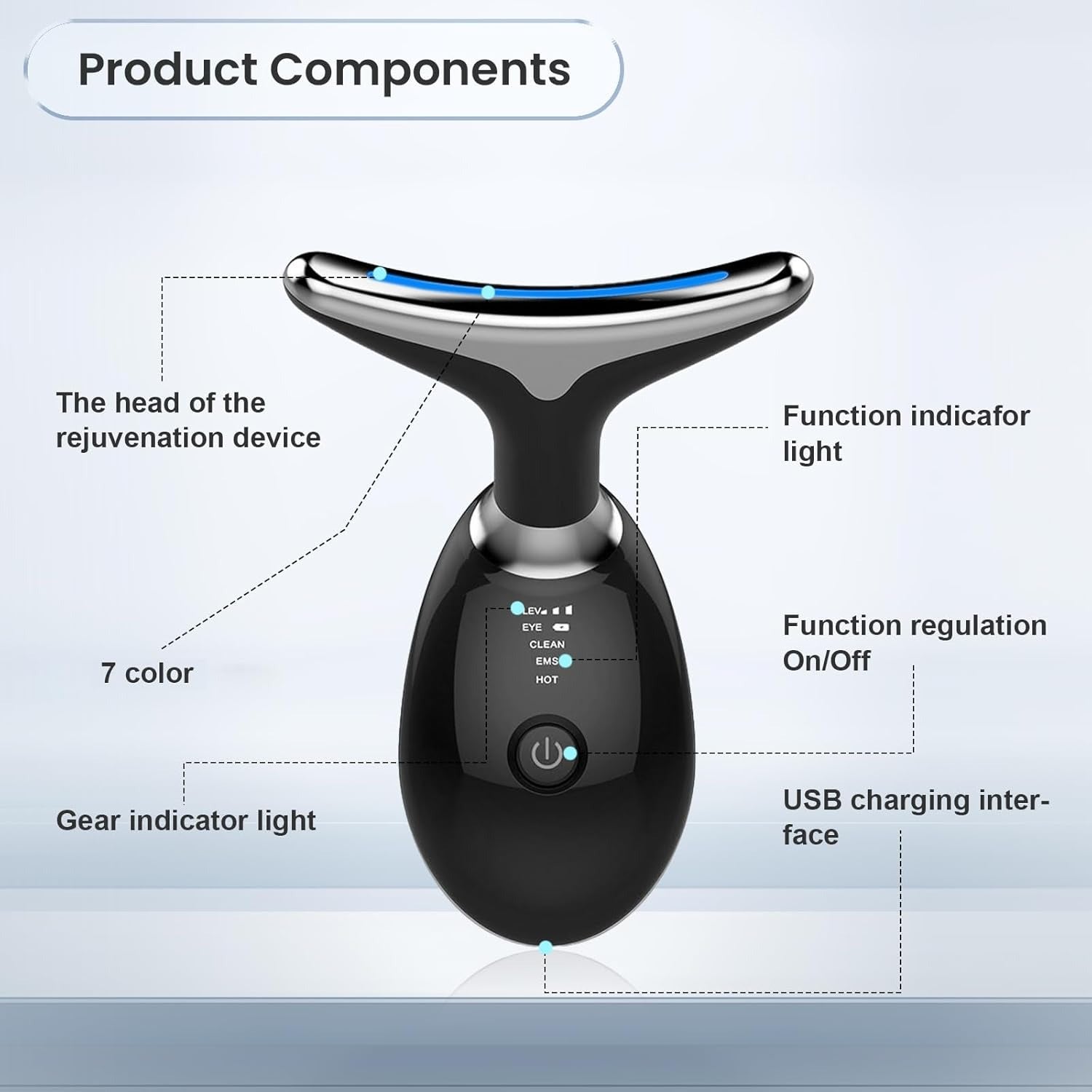يحتوي على 7 أوضاع علاج ضوئي لتحسين مرونة البشرة وتقليل الخطوط الدقيقة، مع وظيفة تسخين تصل إلى 113°F (45°C) لتسهيل امتصاص الكريمات والسيرومات.