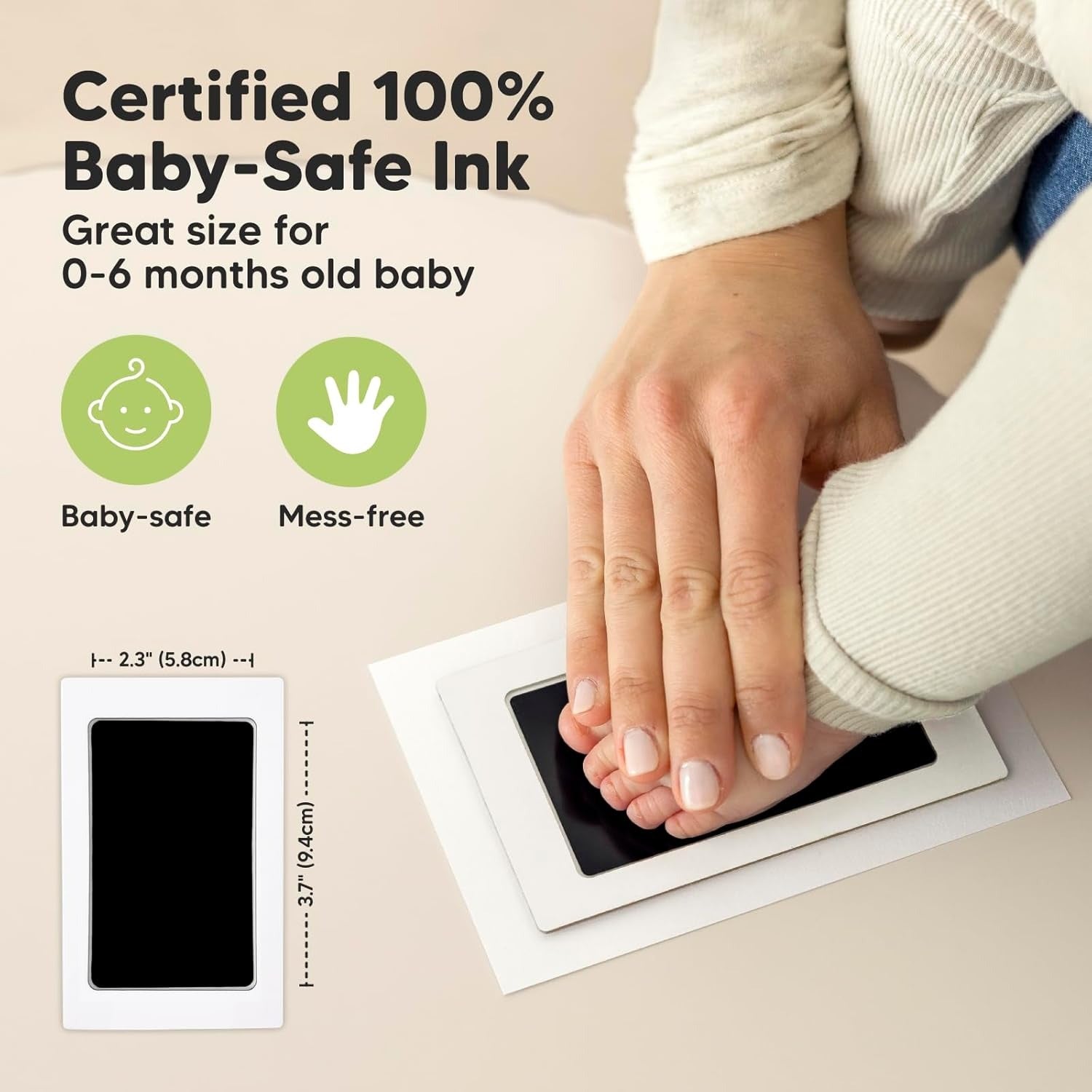 بفضل حجم وسادة الحبر المثالي (3.5 × 5 إنش)، يمكنك بسهولة طباعة آثار اليدين والقدمين لطفلك حديث الولادة (من 0 إلى 6 أشهر) في أقل من دقيقة.