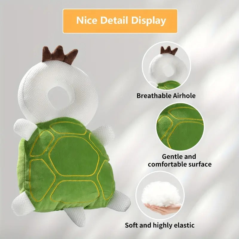 امنحي صغيرك الأمان والراحة مع واقي الرأس والظهر اللطيف على شكل سلحفاة، المصمم خصيصًا لحماية الأطفال أثناء مراحل الزحف أو المشي الأولى.